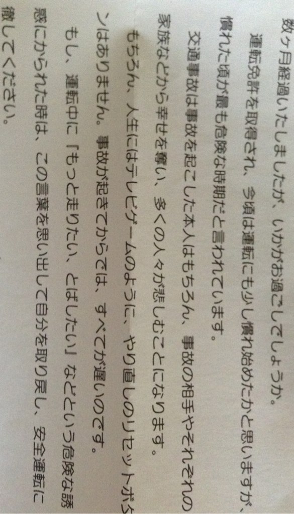 終わって先生から「もうちょっと安全確認を広くしましょう。」みたいなことを言われて。